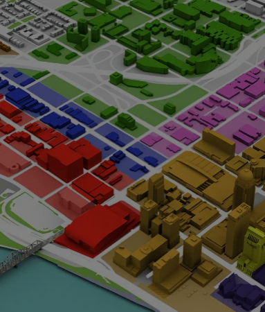 Visualization using spatial analysis, market studies, employment impacts, demographics trends, heat maps, etc